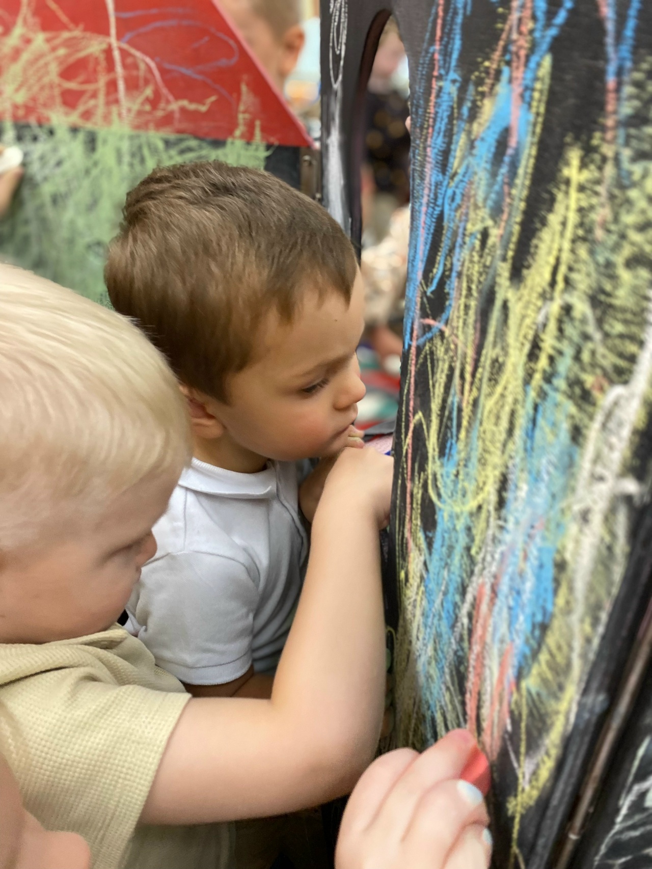 Детки совершили путешествие от дома к дому, поиграли со светом, создали мелодии улиц и нарисовали на стенах домов.